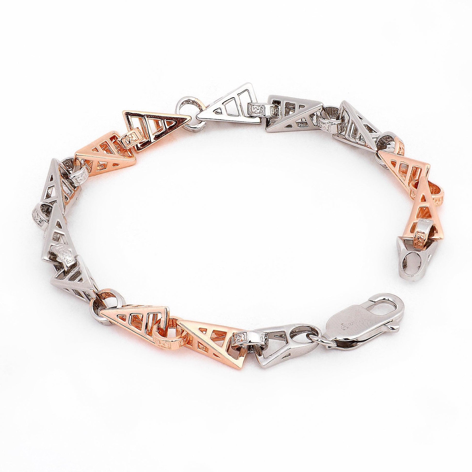 Dual-Tone Geometric Link 925 Sterling Silver Bracelet for Men