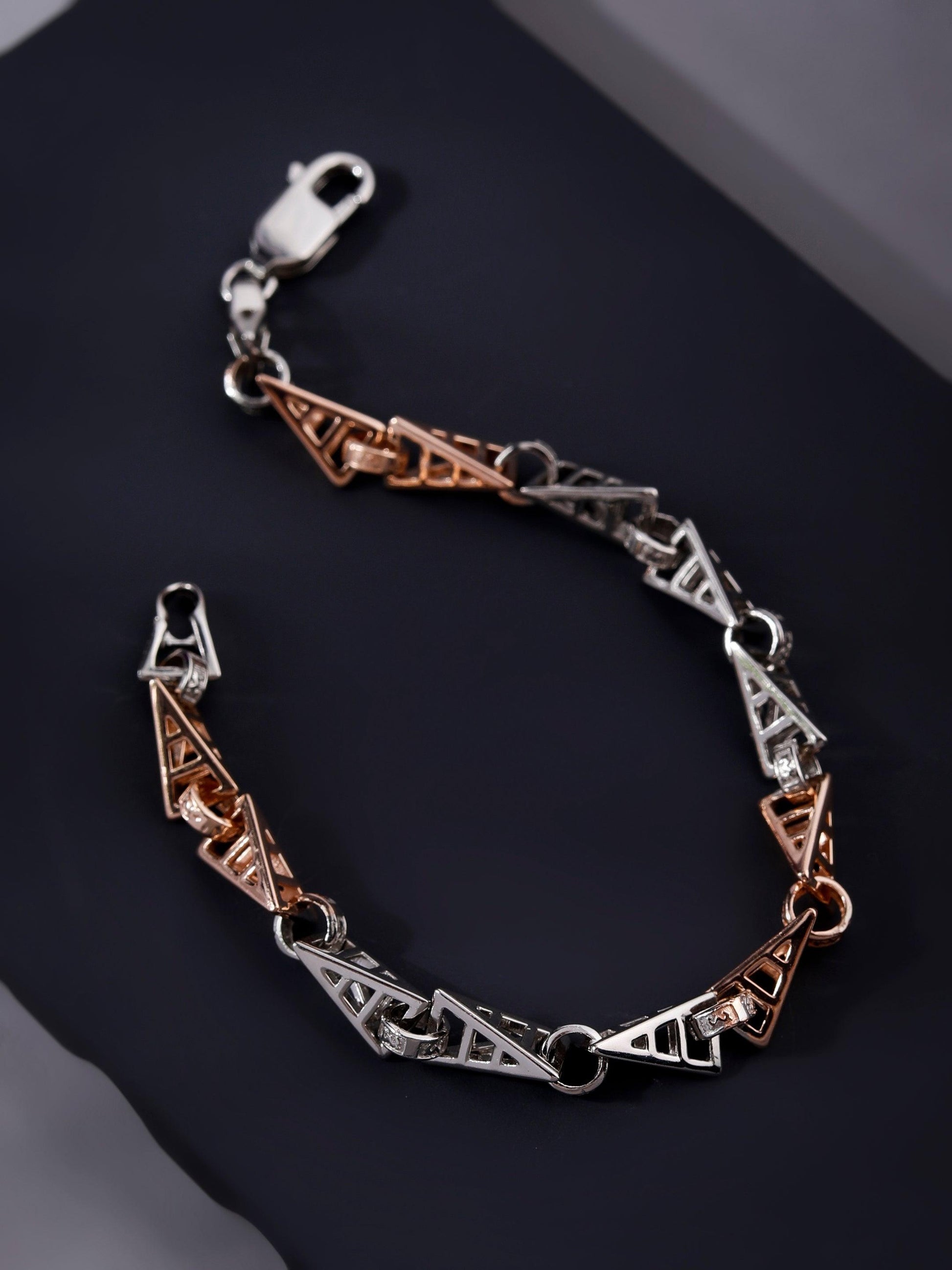 Make a bold statement with this Dual-Tone Geometric Link Bracelet, crafted in premium 925 sterling silver with a sleek rose gold accent. The modern cutout design gives it a sharp, edgy appeal while keeping it lightweight and comfortable for daily wear. A perfect fusion of strength and style, this men’s bracelet is versatile enough to pair with both casual and formal looks. Processing time: 3 days.