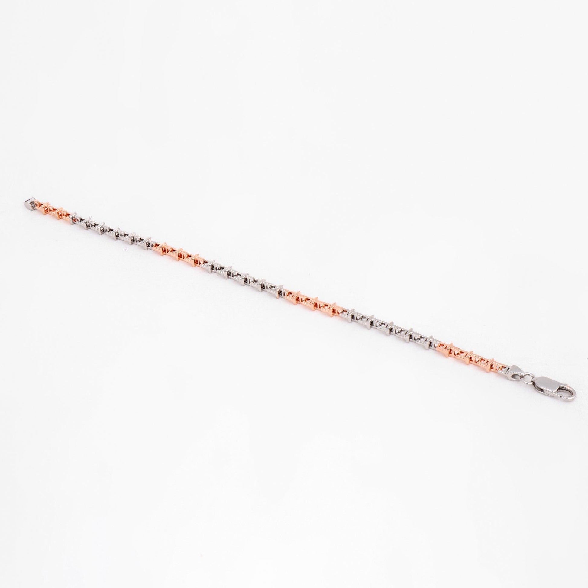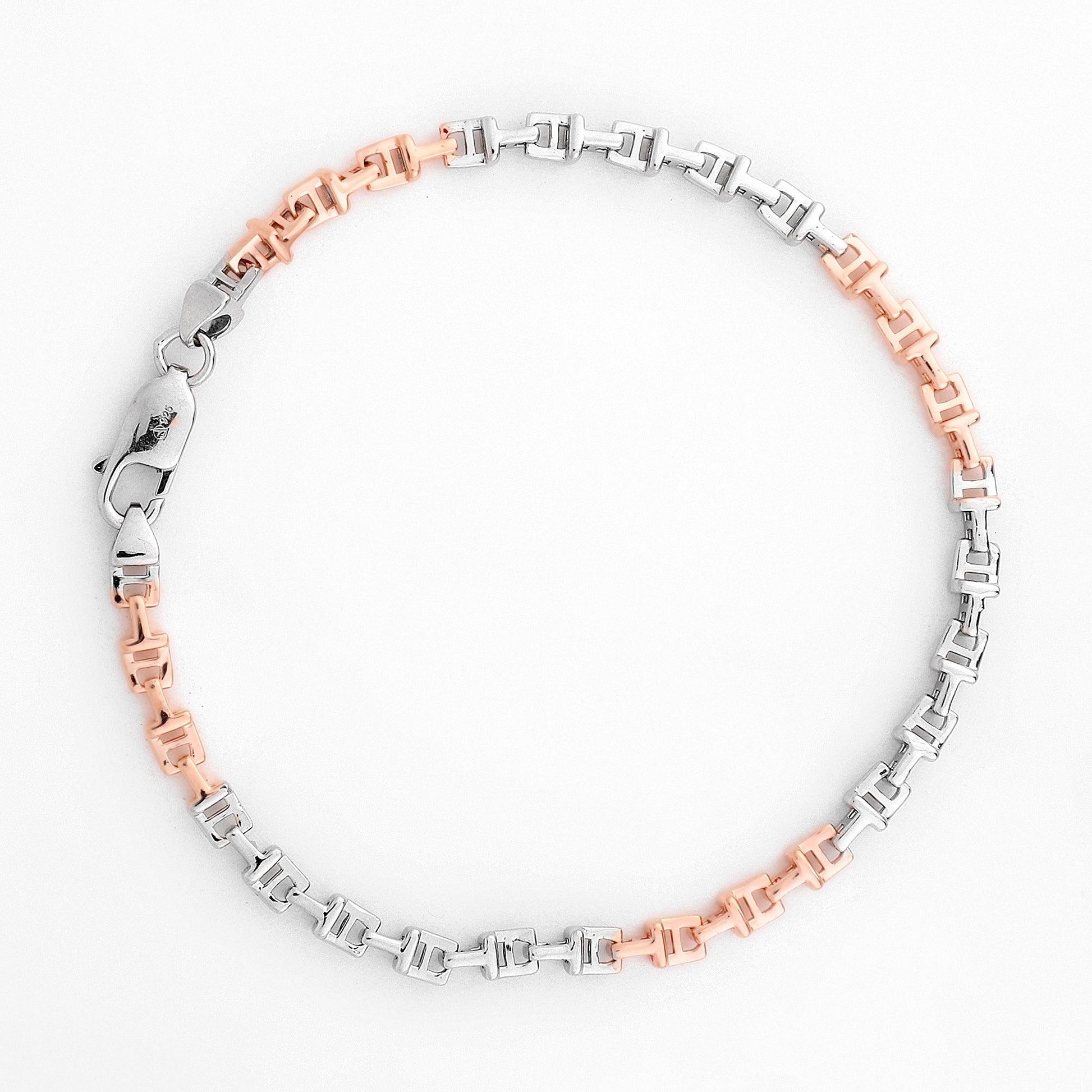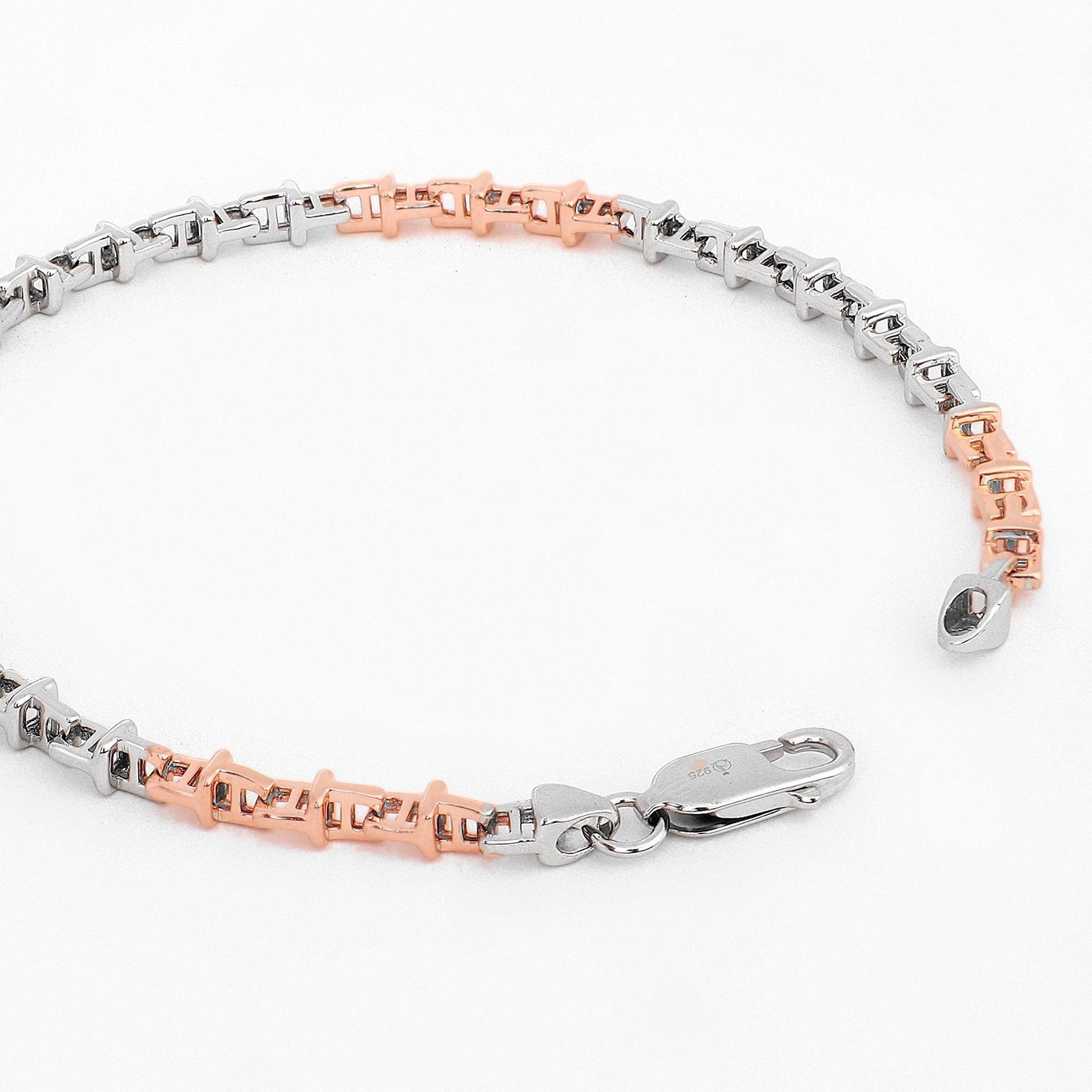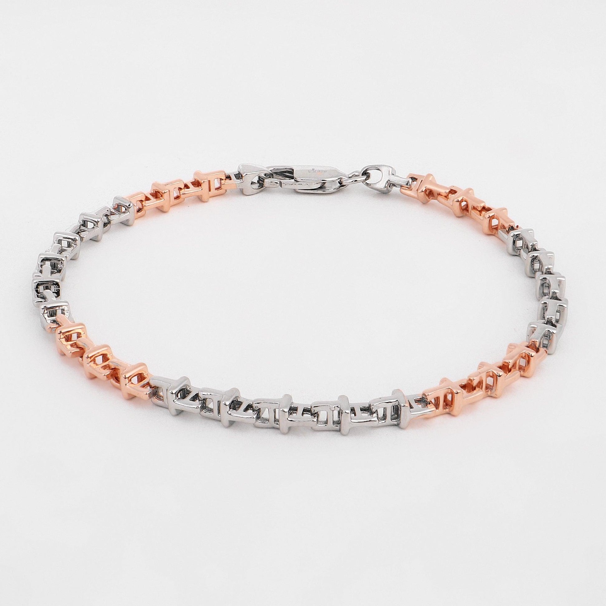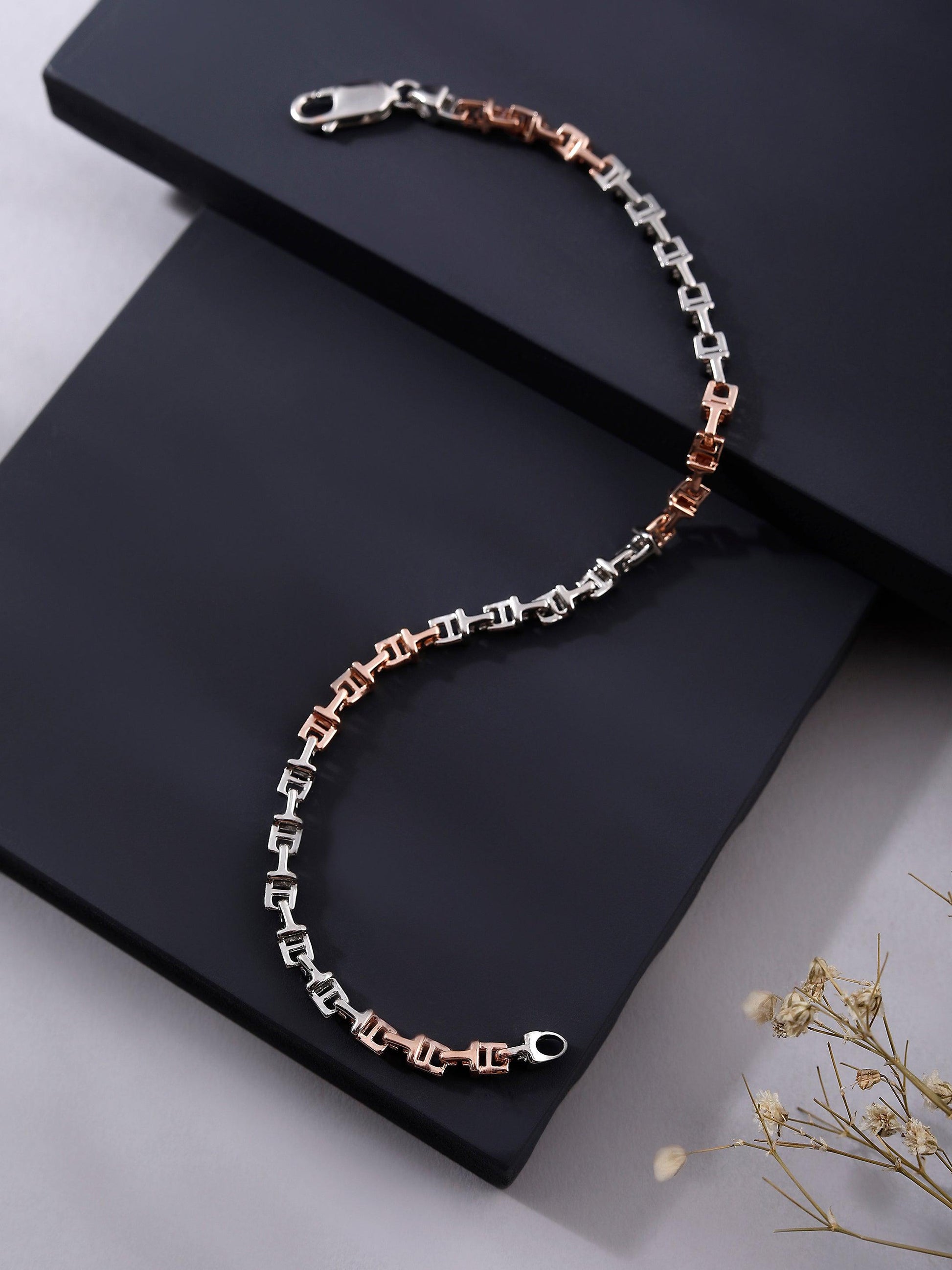 Add a bold edge to your style with this Dual-Tone Geometric Link Bracelet. Crafted from 925 sterling silver with rose gold plating, it features a modern link design that blends strength with elegance. Perfect for men who prefer standout accessories, this bracelet complements both casual and formal outfits. Processing time: 3 days.