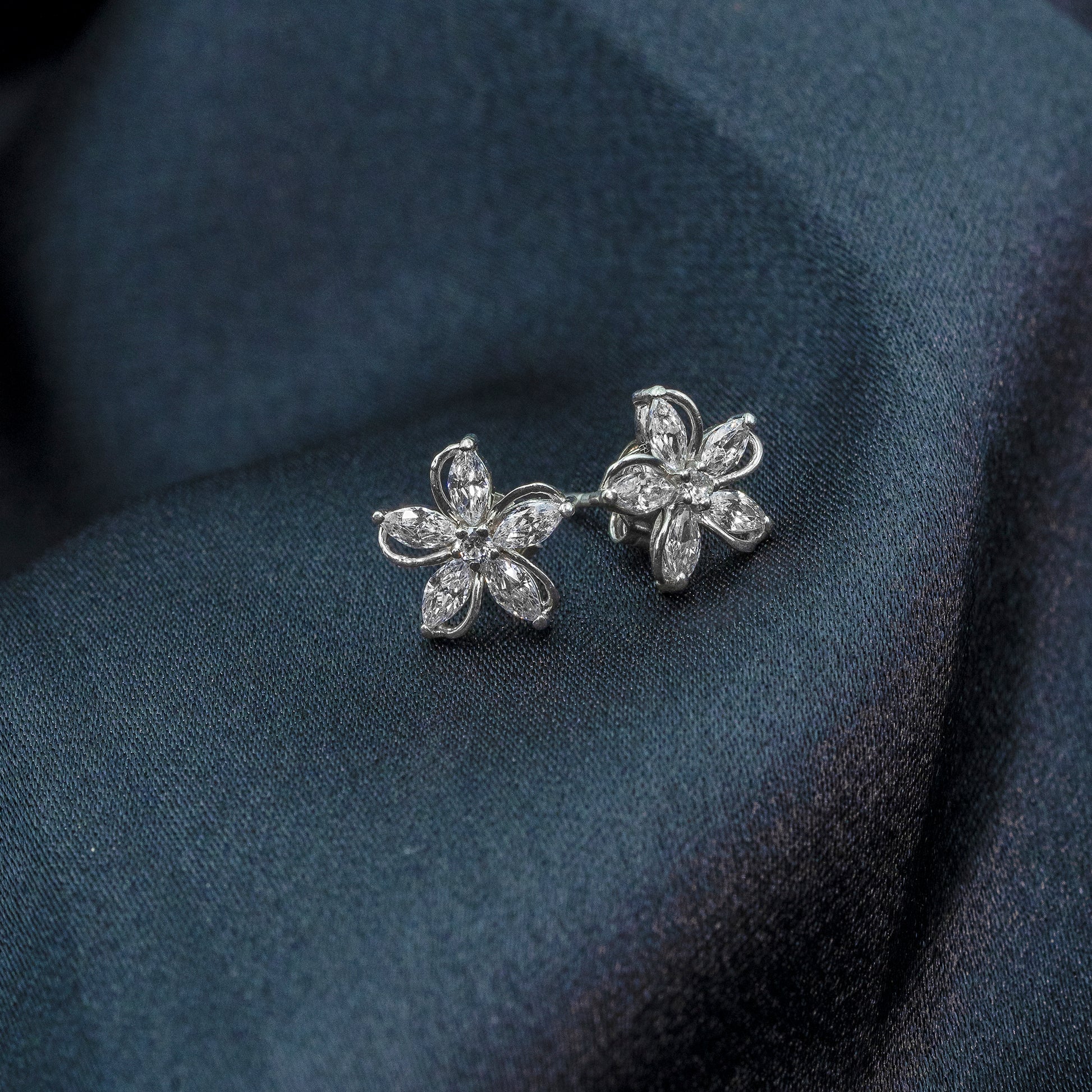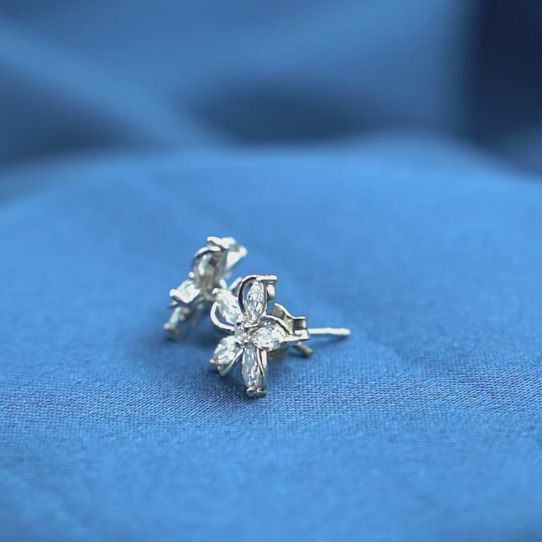 Crafted from 925 sterling silver with rhodium plating, these floral stud earrings feature sparkling cubic zirconia for a timeless shine. Lightweight and elegant, they’re perfect for everyday wear or special occasions.
