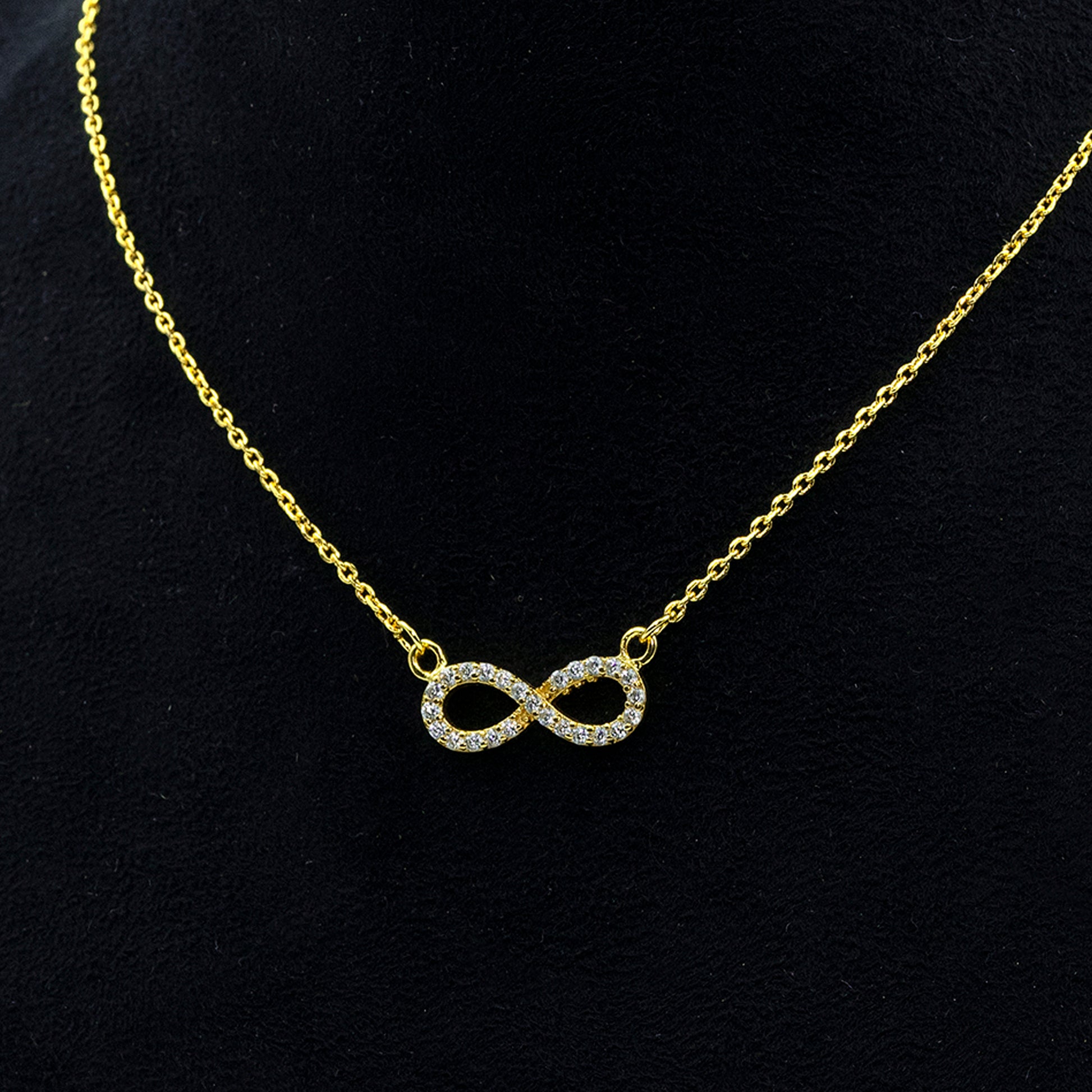 Crafted from 925 sterling silver with 18K gold plating, this cubic zirconia infinity pendant symbolizes eternity and empowerment. A versatile, elegant piece, perfect for everyday wear or special occasions.