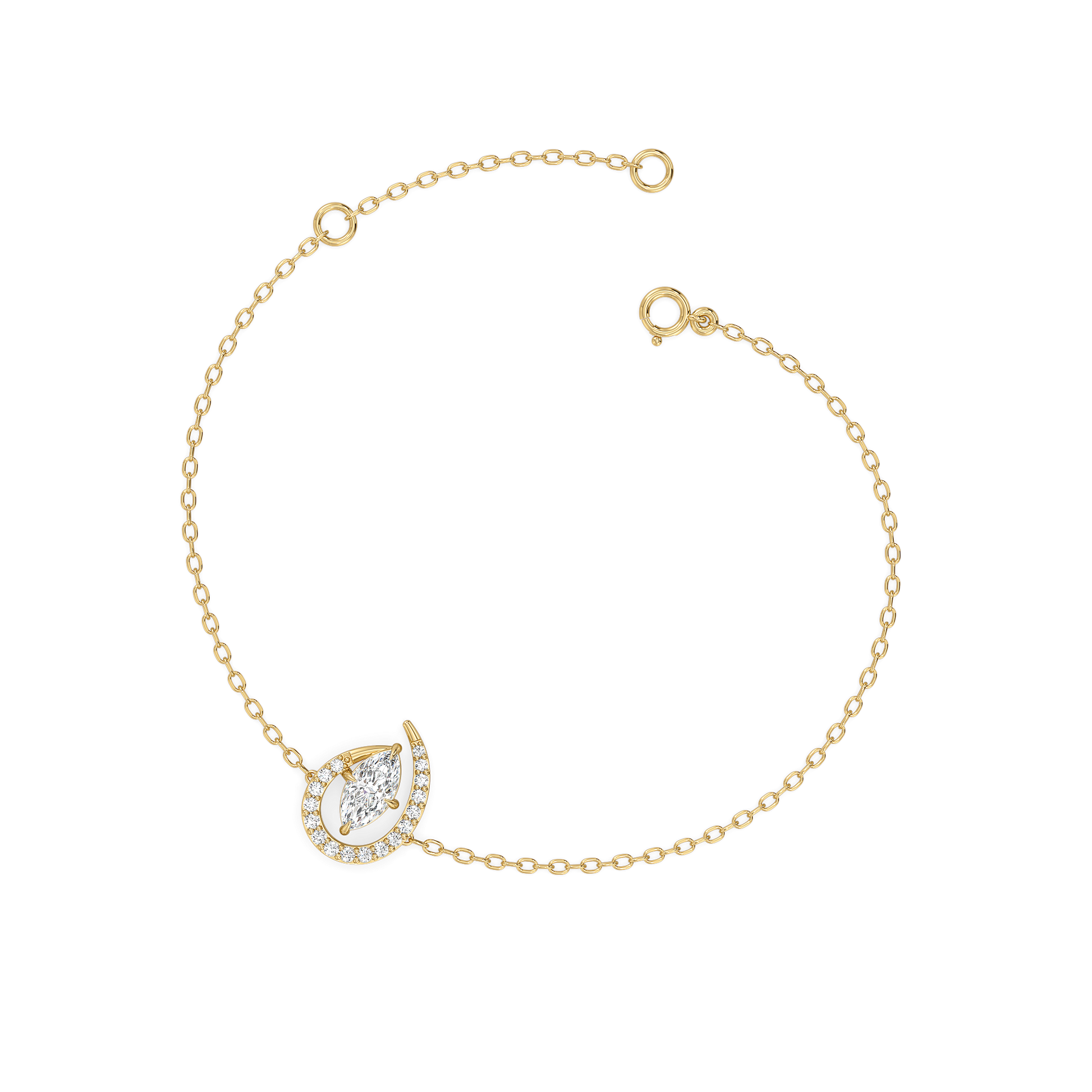 A modern classic, this exquisite bracelet showcases a 0.48 Ct EF/VVS-VS lab-grown marquise diamond at its center, gracefully surrounded by a sparkling halo of 0.12 Ct EF/VVS-VS round diamonds. Meticulously crafted in 9K or 14K pure gold, the design weighs approximately 2 grams, making it light yet luxurious. Its timeless elegance and refined brilliance make it perfect for both daily wear and special occasions.